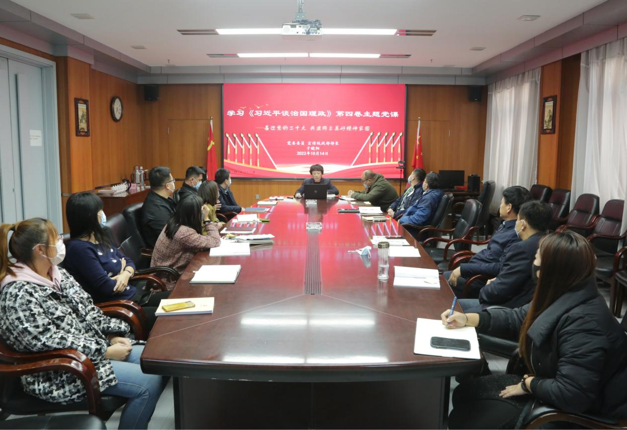 按照学校党委和机关党总支关于学习《习近平谈治国理政》第四卷的工作部署,2022年10月14日下午四点整,机关第一党支部在尚德楼九楼会议室开展了学习《习近平谈治国理政》第四卷的党课宣讲活动,党委委员、工会主席赵俊岭同志以普通党员身份参加活动。