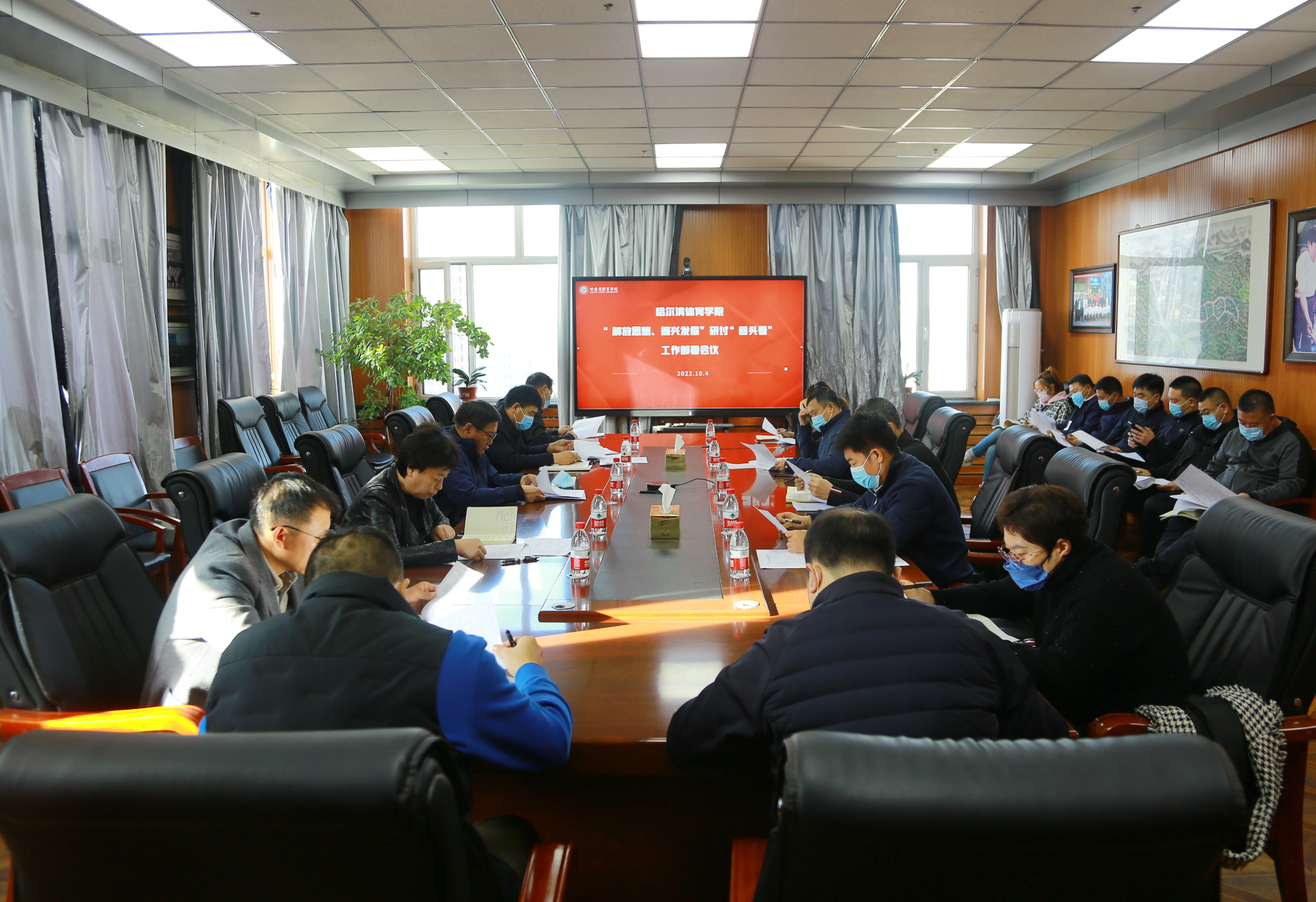 按照省委、省委教育工委关于开展“能力作风建设年”活动及维护校园安全稳定工作要求,学校于10月4日在尚德楼八楼会议室召开“解放思想、振兴发展”研讨“回头看”暨安全稳定工作部署会议,校工会主席赵俊岭、有关职能部门负责人、各二级学院党总支书记出席会议。