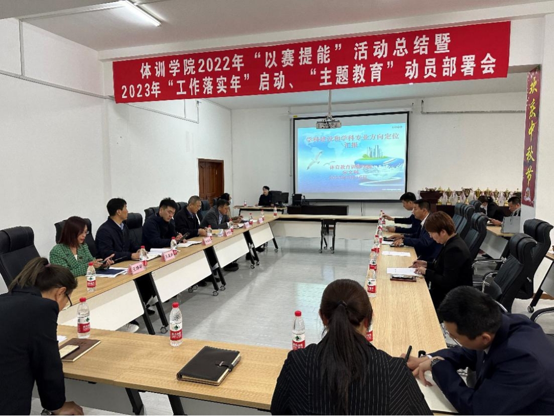 院长宋文利对体育教育训练学院基本情况、专业建设、专业学科一体化建设、教研室教研活动情况逐一汇报,并对学校专业建设提出意见和建议。