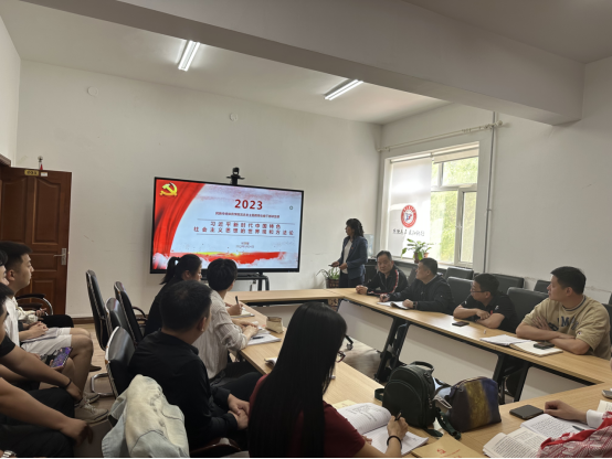 院长杨慧馨同志以《习近平新时代中国特色社会主义思想的世界观和方法论》为题讲授专题党课。她从坚持人民至上,坚持自信自立,坚持守正创新,坚持问题导向,坚持系统观念,坚持胸怀天下等六个方面进行讲授。