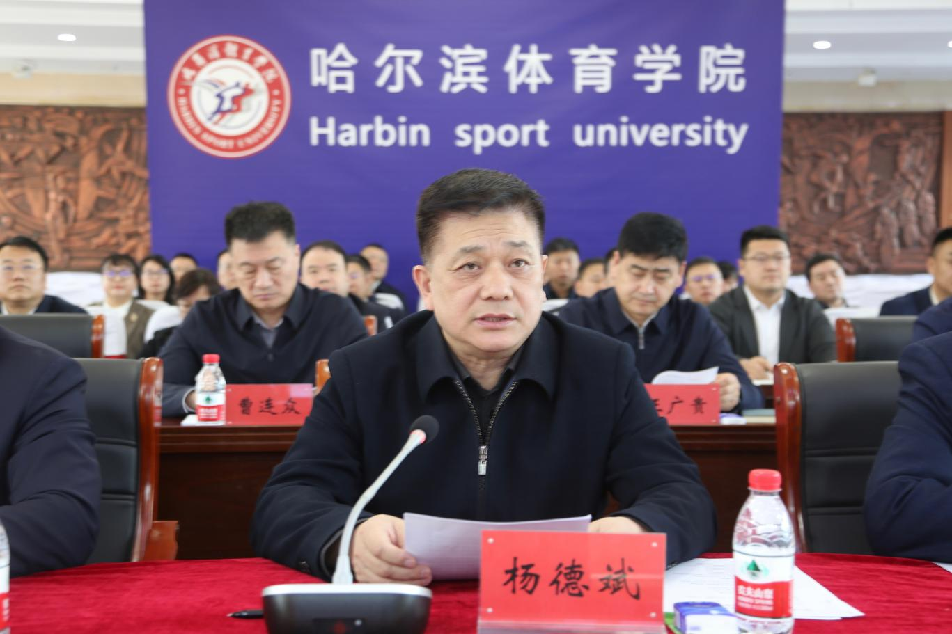 省教育厅二级巡视员杨德斌在致辞中对学校始终坚持落实立德树人根本任务,牢记为党育人、为国育才的初心使命,服务教育和体育事业发展的办学成绩给予高度肯定。他表示,此次审核评估是对学校办学实力、办学水平、办学影响力的一次全面检阅,更是学校进一步实现高质量发展的一次契机。他代表省教育厅就做好审核评估工作提出三点建议,一要提高站位,全力配合专家做好评估工作。二要把握评估机遇,实现内涵式高质量发展。三要规范实施评估工作,确保评估质量。